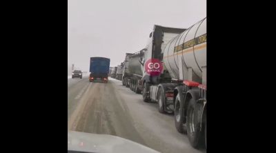 Движение большегрузов затруднено на одном из участков трассы из-за перекрытия дороги. Такие меры были введены из-за разыгравшейся метели