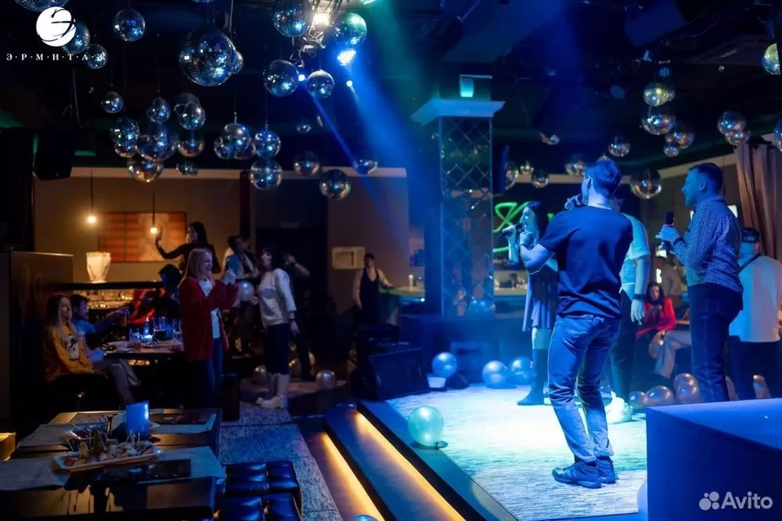 Вторая часть комплекса — ресторанная зона с баром. В меню представлены блюда европейской, американской и русской кухни. Отдельно выделено пространство для караоке со сценой.