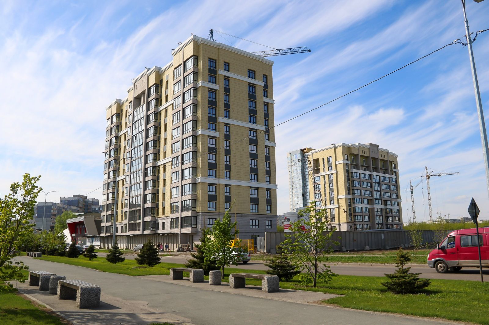 Как бы то ни было, ЖК выглядит почти готовым. Он состоит из двух корпусов в 10 и 12 этажей. Самый высокий дом на две секции выполнен из кирпича. Застройщик "усадил" его вдоль улицы Взлетной.