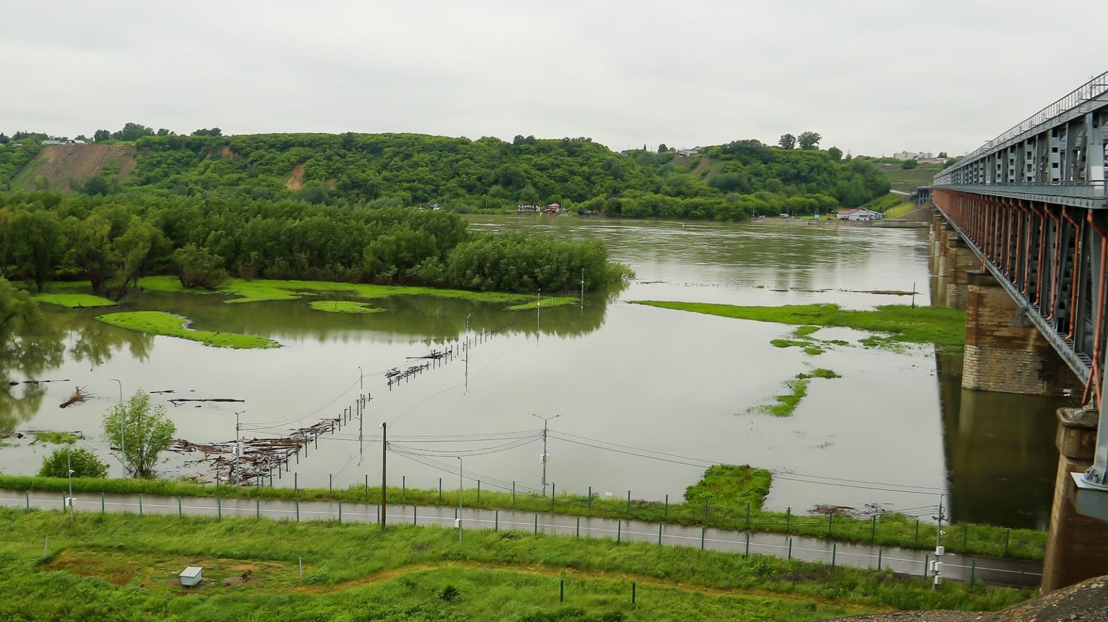 То, что Обь в настоящее время действительно полноводна, хорошо видно в районе старого моста – здесь уже который день можно наблюдать затопленную пойму реки.