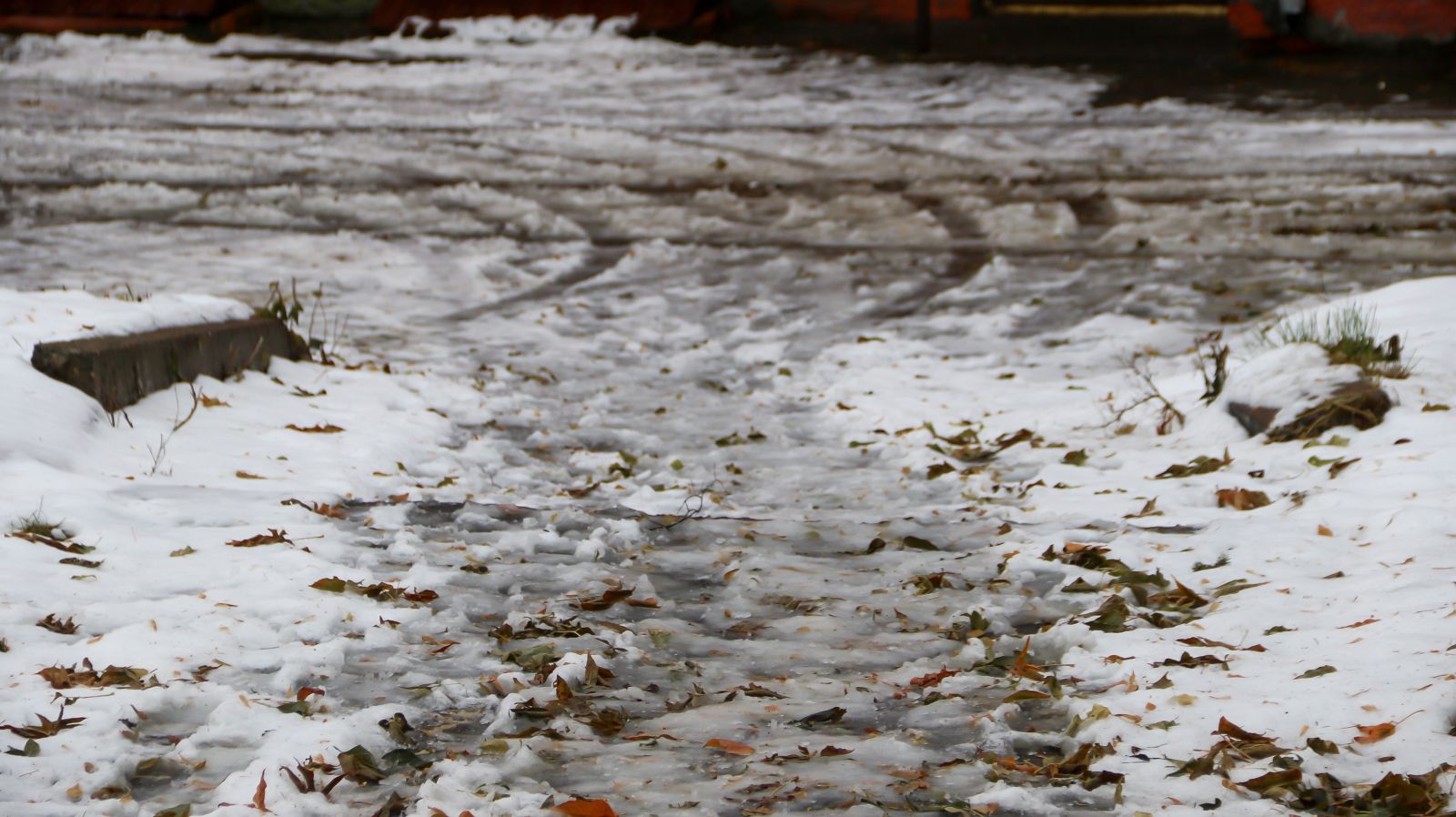 Ноябрьские снег и дождь, как обычно, начали менять "летнее" покрытие во дворах на "зимние одежды", осложняя жизнь водителям и пешеходам