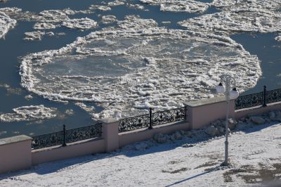 На Оби в Барнауле появилась шуга. "Пятнистую" реку запечатлел фотограф Олег Укладов.
