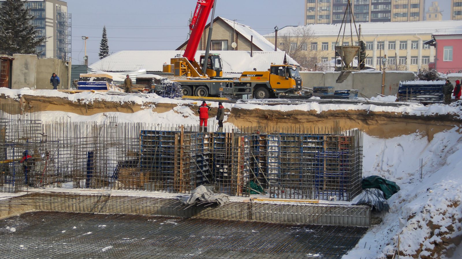 Согласно фотоотчету на сайте нашдом.рф, в ноябре 2025 года уже были готовы котлован, фундамент и первые конструкции. Сейчас рабочие продолжают заниматься армированием стен "коробки" будущего жилого комплекса. Судя по происходящему на стройке, работы ведутся по нескольким направлениям.