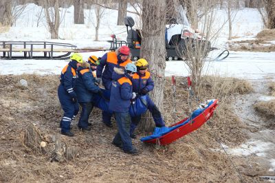Спасатели отработали эвакуацию пострадавшего через реку, доставку еды с воздуха в отрезанные паводком населенные пункты и другие вероятные сценарии работы служб РСЧС во время стихийных бедствий