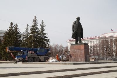 В Барнауле подходит к концу ремонт памятника Владимиру Ленину перед правительством Алтайского края. Фотограф Олег Укладов запечатлел процесс на месте.