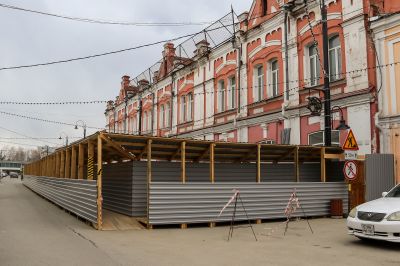 Сегодня фасады здания закрыты забором с пешеходными переходами. В настоящее время в нем вовсю идут ремонтно-реставрационные работы. В конце прошлого года тендер на их проведение выиграл известный в Барнауле подрядчик, работающий в сфере бюджетных строек и восстановления памятников архитектуры, – компания "Век-Строй".