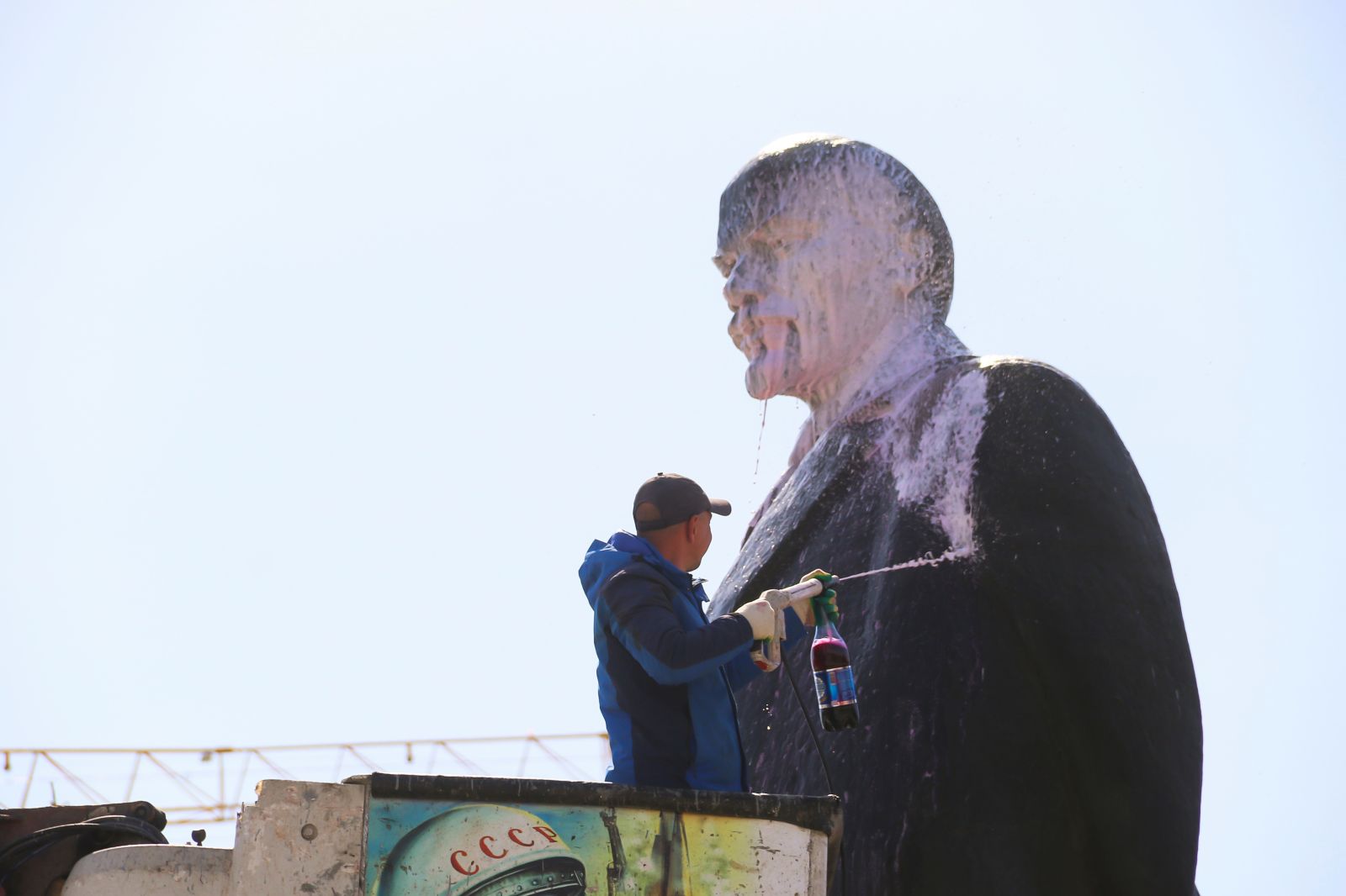 Ремонт постамента памятника Владимиру Ленину в центре Барнаула завершен, и 20 апреля скульптуру вождя революции помыли после восстановительных работ.