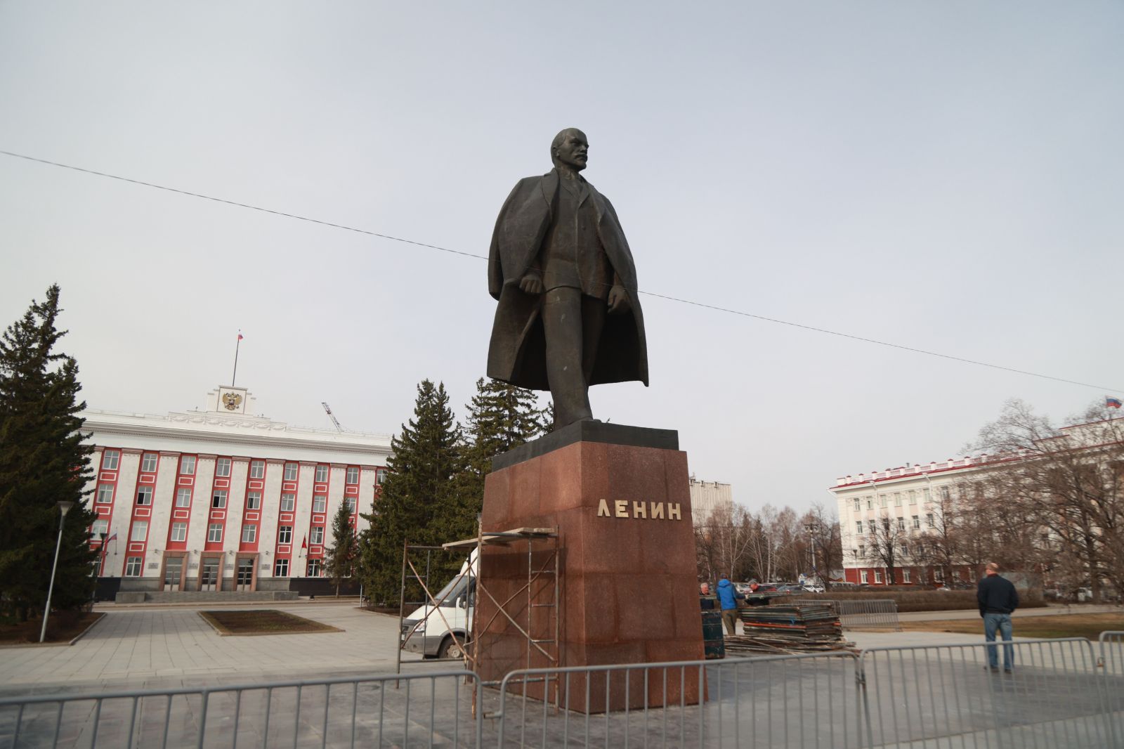 18 апреля Ленина снова установили на постамент, а 20 апреля помыли.