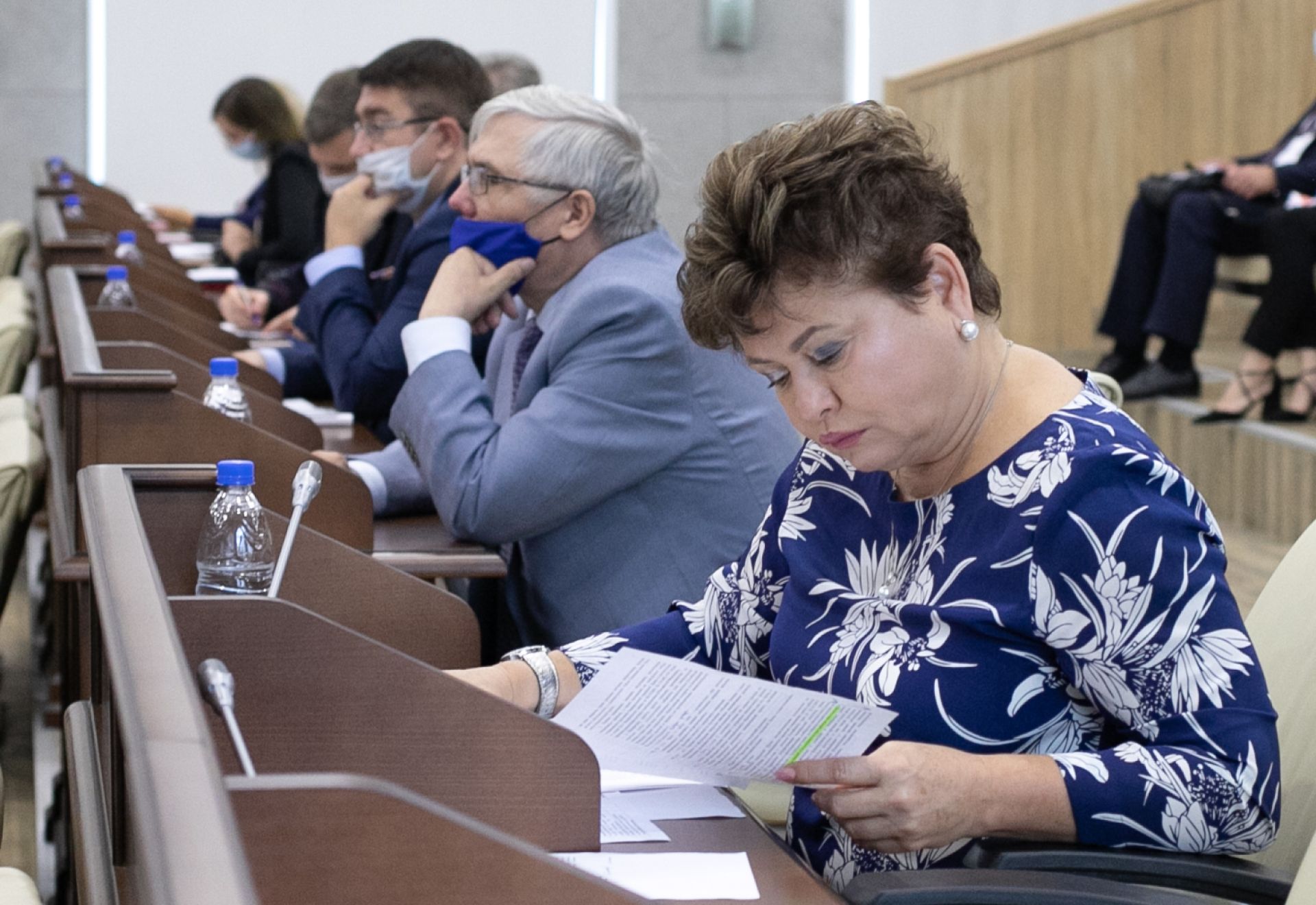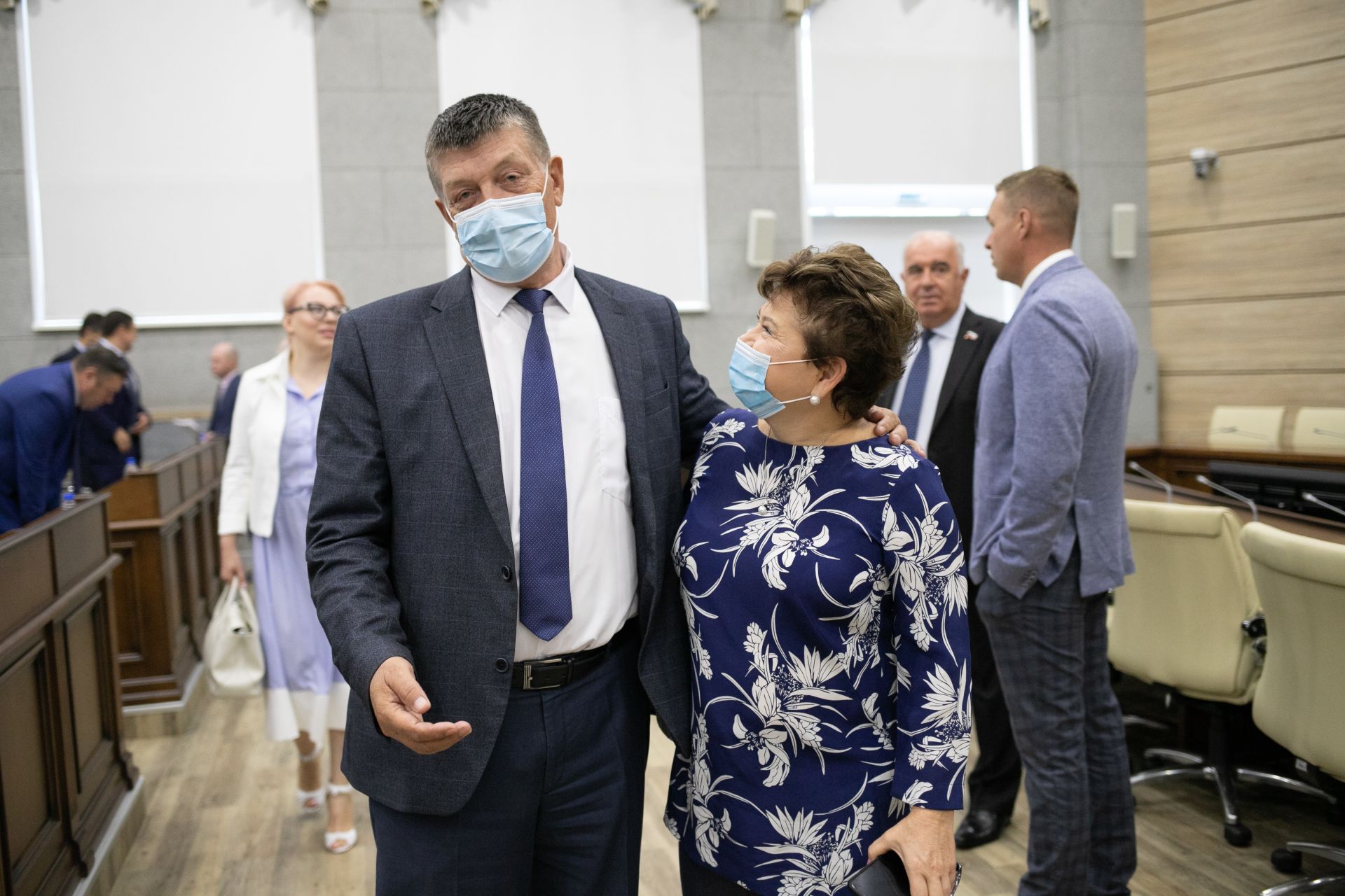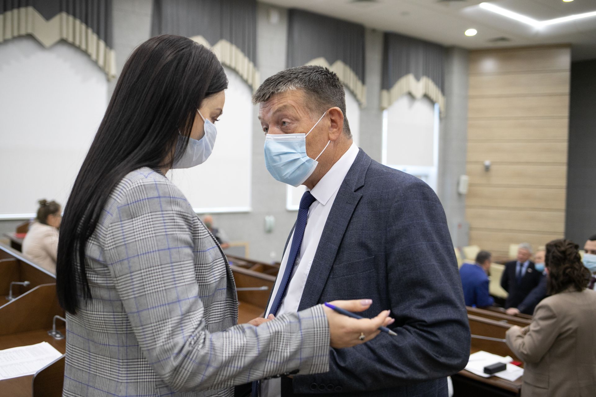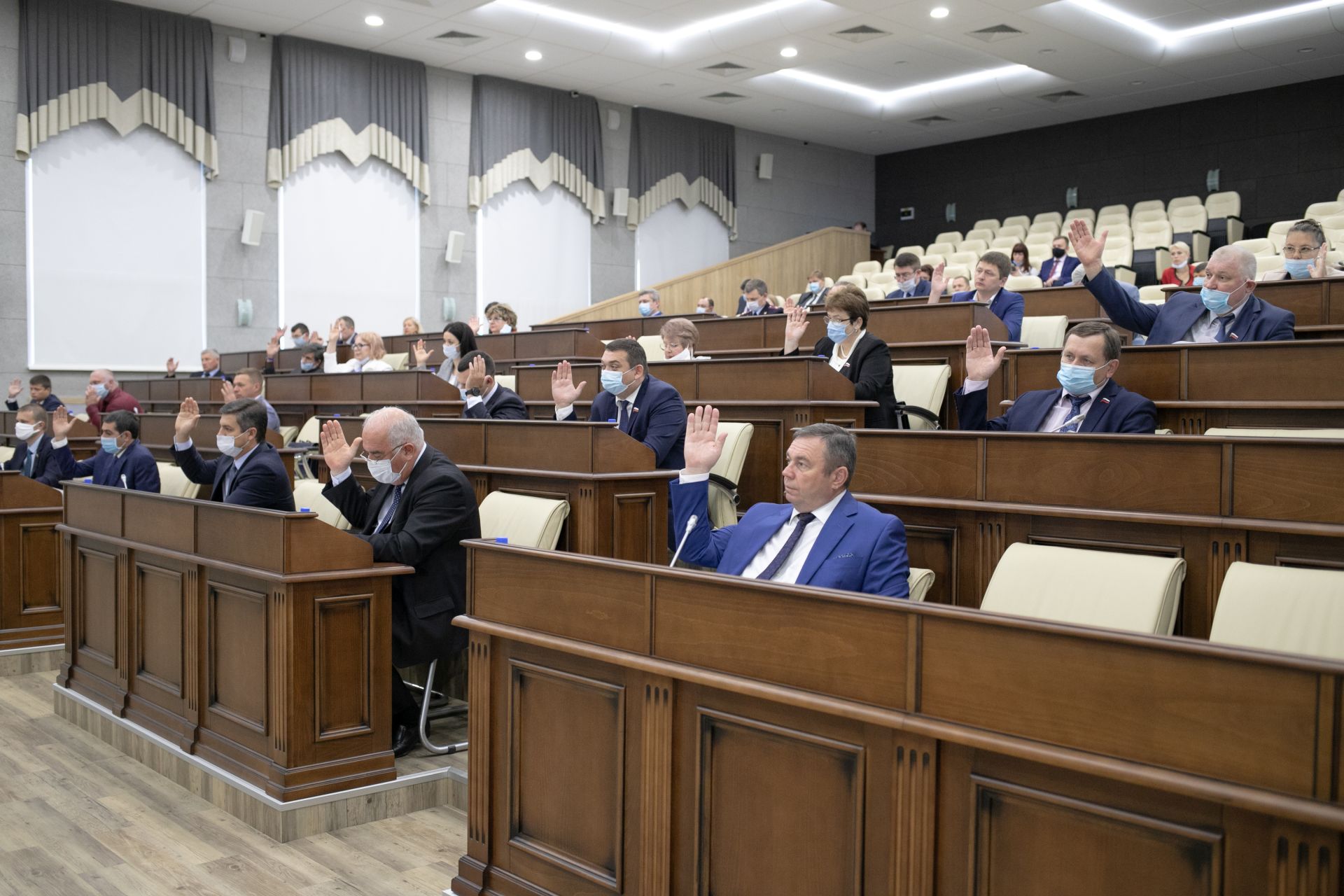 Во время заседания все депутаты соблюдали рекомендованную дистанцию в 1,5 метра, а после каждого докладчика дезинфицировали трибуну.