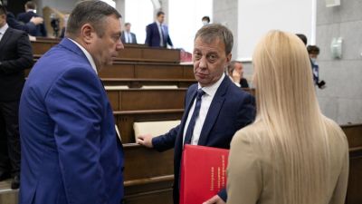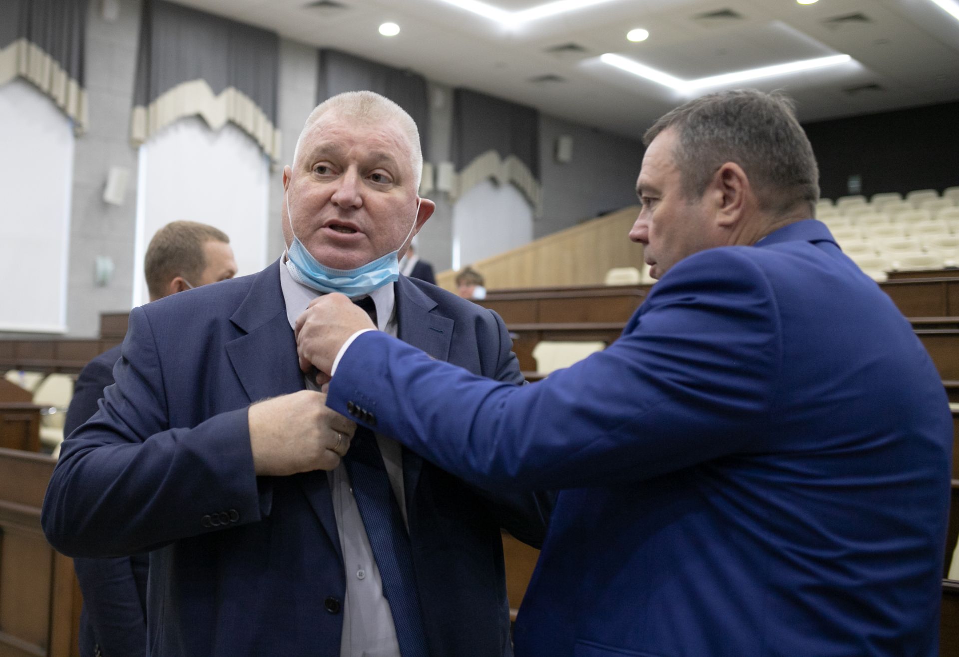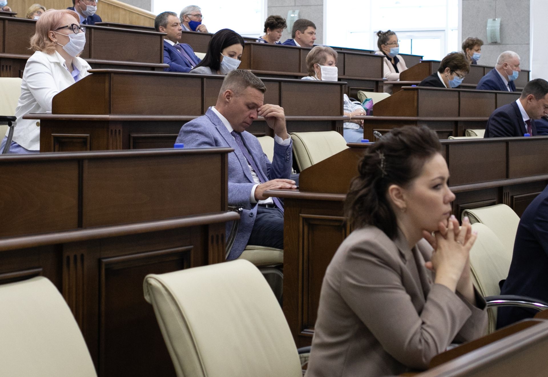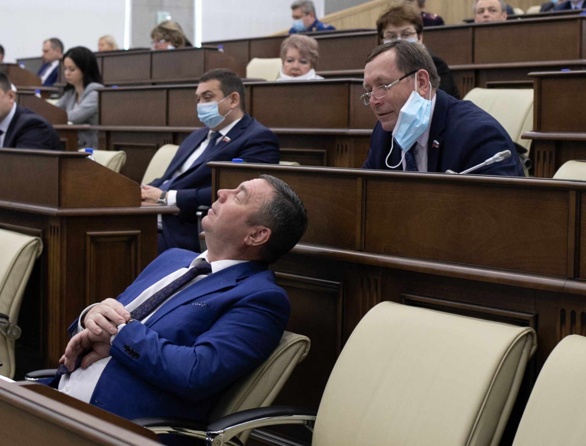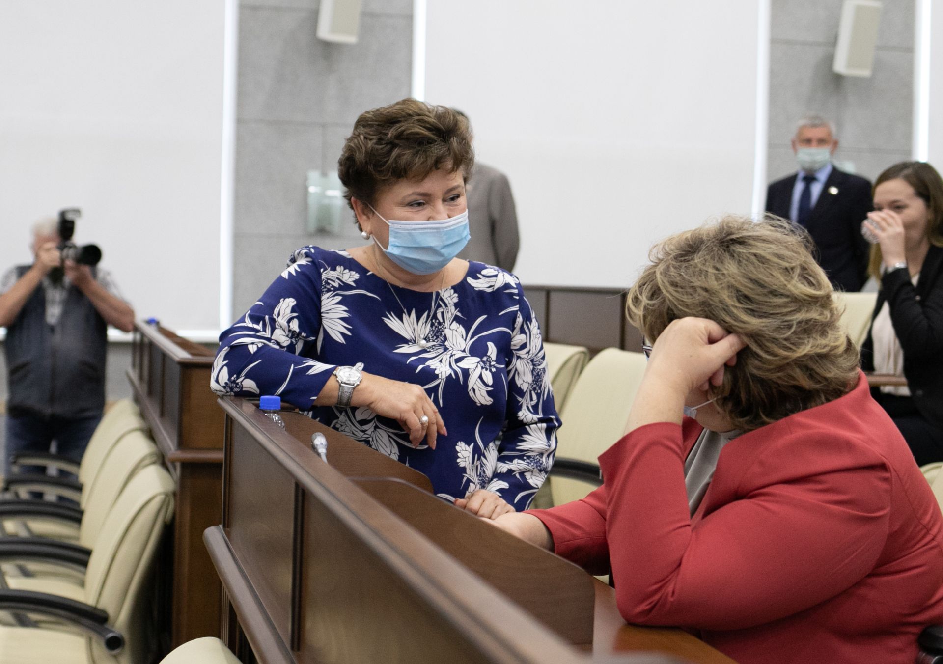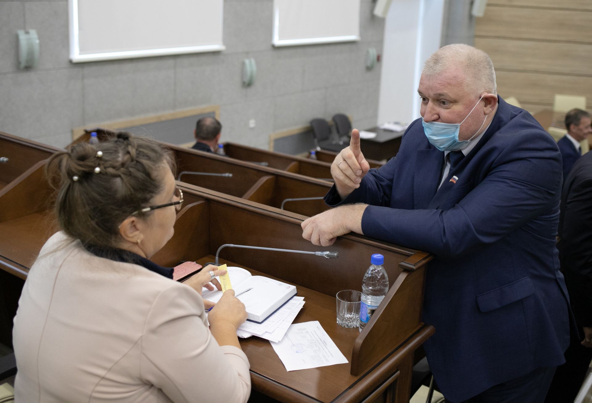 Во время заседания все депутаты соблюдали рекомендованную дистанцию в 1,5 метра, а после каждого докладчика дезинфицировали трибуну.