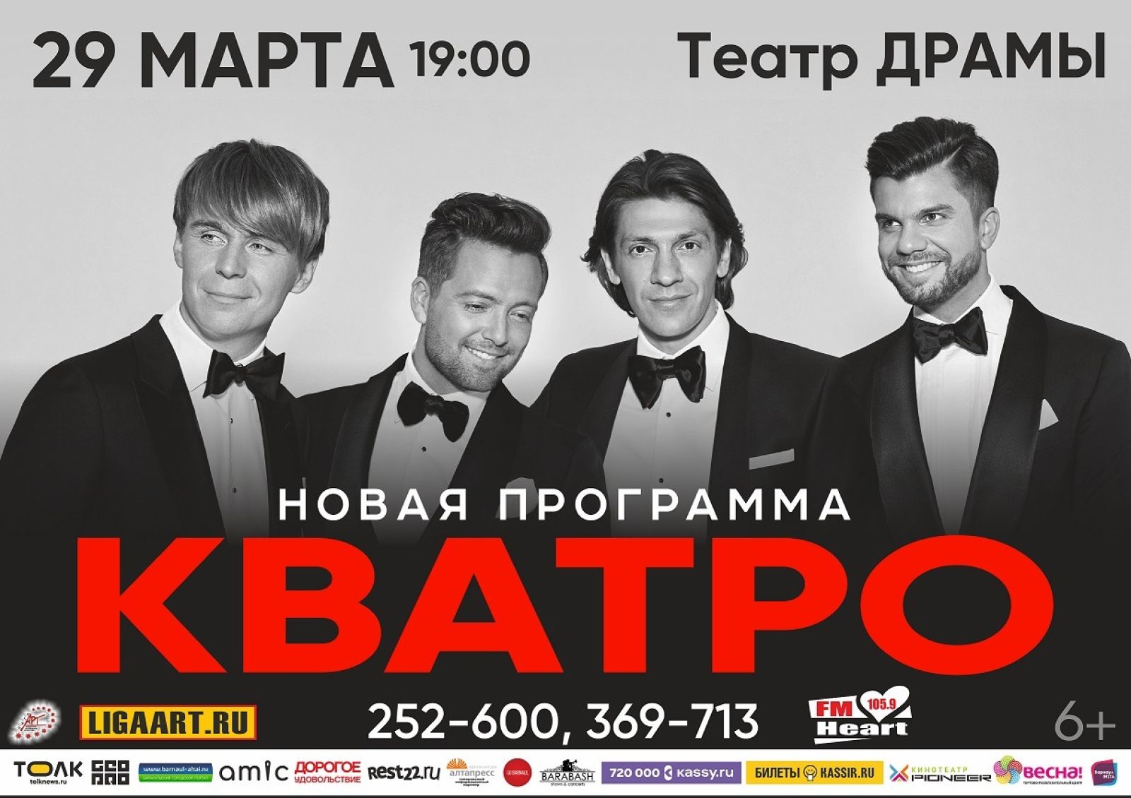 29 марта в Барнауле на сцене театра драмы – долгожданные премьеры и мировые хиты, баллады о любви и вечная классика в исполнении группы "Кватро"