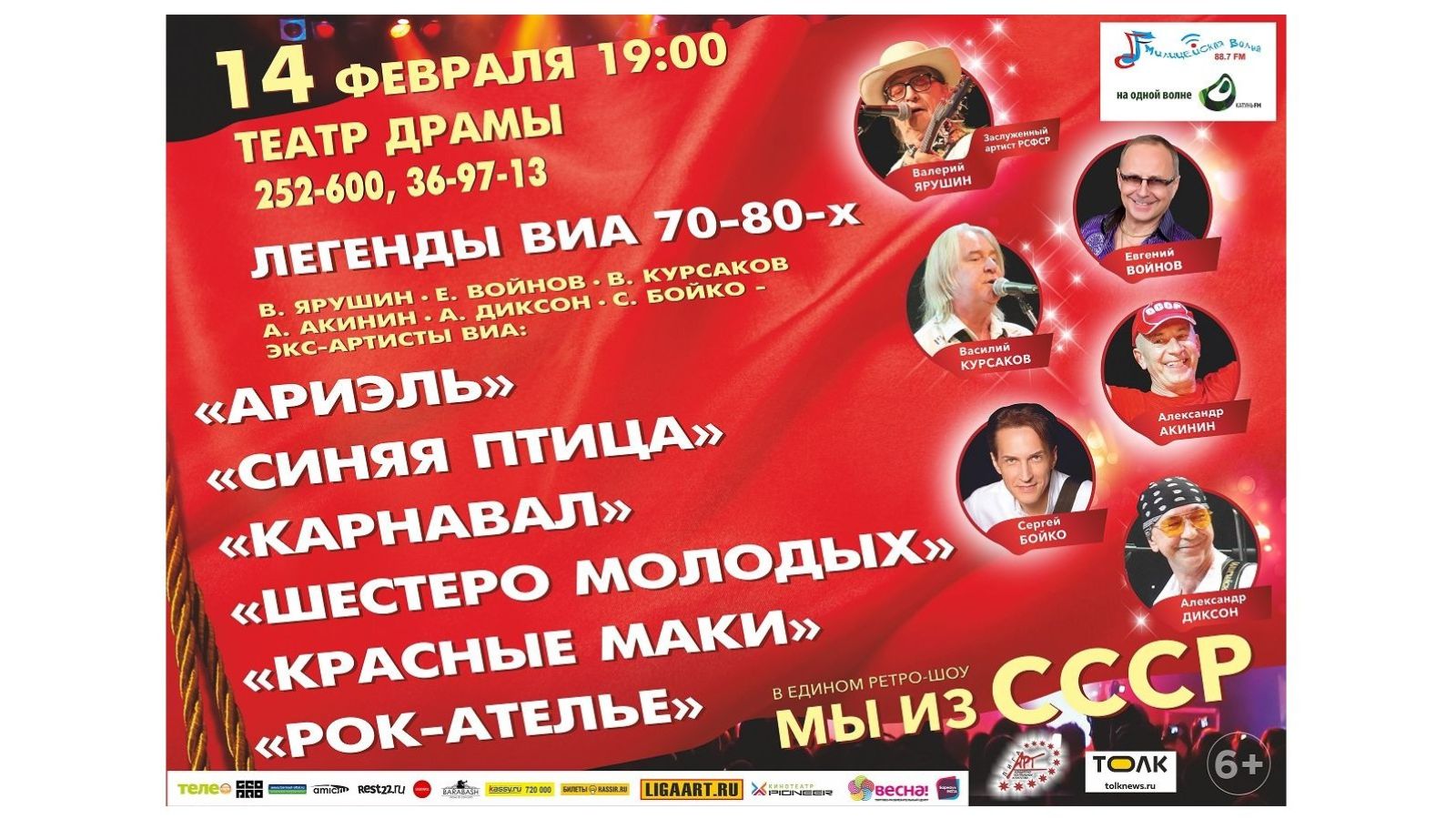 14 февраля в Барнауле исполнители легендарных ВИА 1970-1980-х годов покажут знаменитое ретрошоу "Мы из СССР". Билеты уже в продаже
