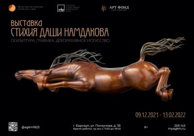 Начиная с 9 декабря жители города смогут познакомиться с произведениями на персональной выставке "Стихия Даши Намдакова. Скульптура, графика, декоративное искусство". В творчестве Даши Намдакова представлены разные виды искусства. Помимо скульптуры, которая занимает главное место в его творчестве, также будут представлены графические работы и произведения ювелирного искусства.