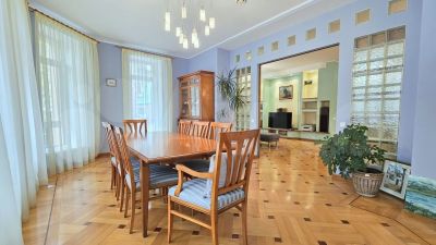 Площадь трехэтажного кирпичного дома насчитывает 352,5 кв. метров. Как отмечает продавец, при обустройстве коттеджа использовались натуральные материалы, дизайн лаконичный и без излишеств. Все это создает "неповторимую атмосферу уюта и статусности", говорится в предложении.