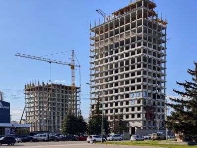 Башни резиденций на площади Сахарова продолжают набирать высоту. Одна из них вот-вот достигнет запроектированной этажности
