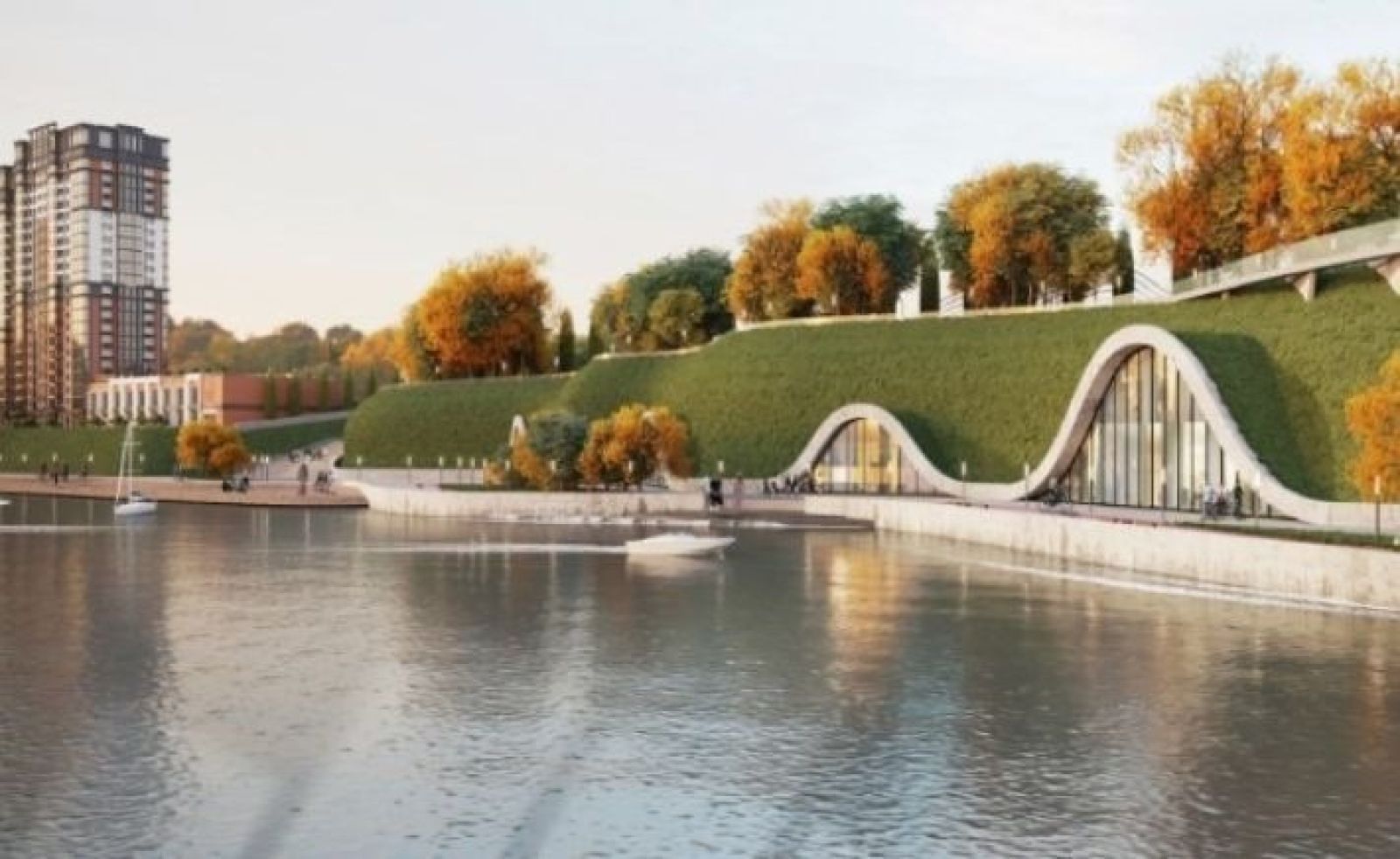 Девелопер сообщил о начале проектирования набережной на улице Промышленной. Первый этап благоустройства включит 500 метров, а в будущем эта зона соединится с главной набережной города. На одной из визуализаций показано расположение торговых и иных коммерческих помещений в склоне.