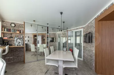 Жилье отличается нестандартной организацией пространства и выполнено в дизайнерском стиле. Помимо нестандартной планировки, в четырехкомнатной квартире есть панорамные окна и два санузла