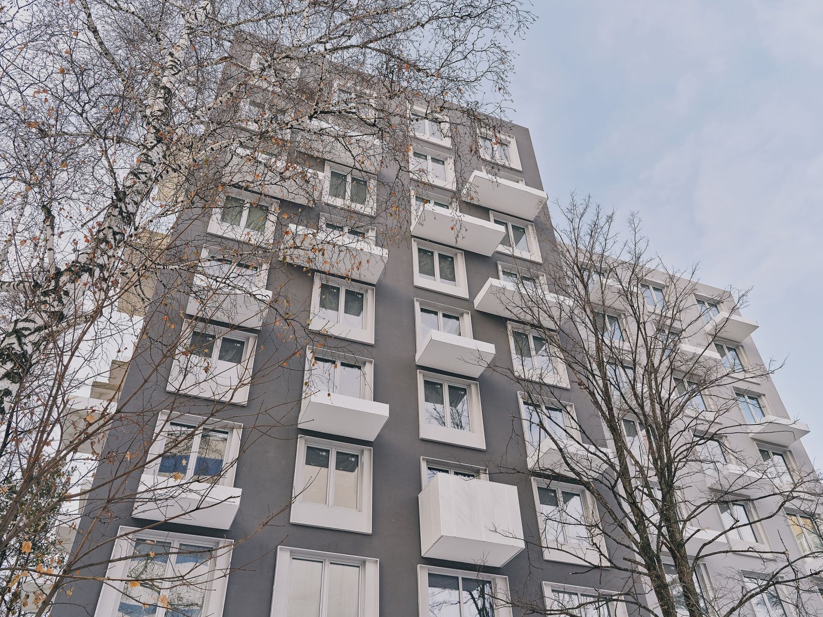Комплекс выполнен в достаточно выдержанном стиле, в спокойных светло-серых тонах и очень гармонично смотрится на фоне вековых деревьев. Все корпуса "выросли" лишь до 9 этажей: невысокая этажность позволяет им отлично вписаться в имеющуюся застройку и природу. Открытые балконы придают зданию шарм, а панорамное остекление, в том числе на подземной парковке, – легкость и воздушность.