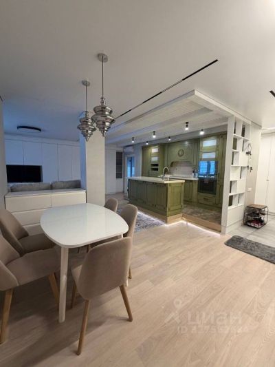 Площадь недвижимости составляет 107,5 кв. метра. В квартире есть просторный холл, кухня, мастер-спальня с санузлом и постирочной, две детские комнаты, гостевой санузел, две лоджии и много мест для хранения.