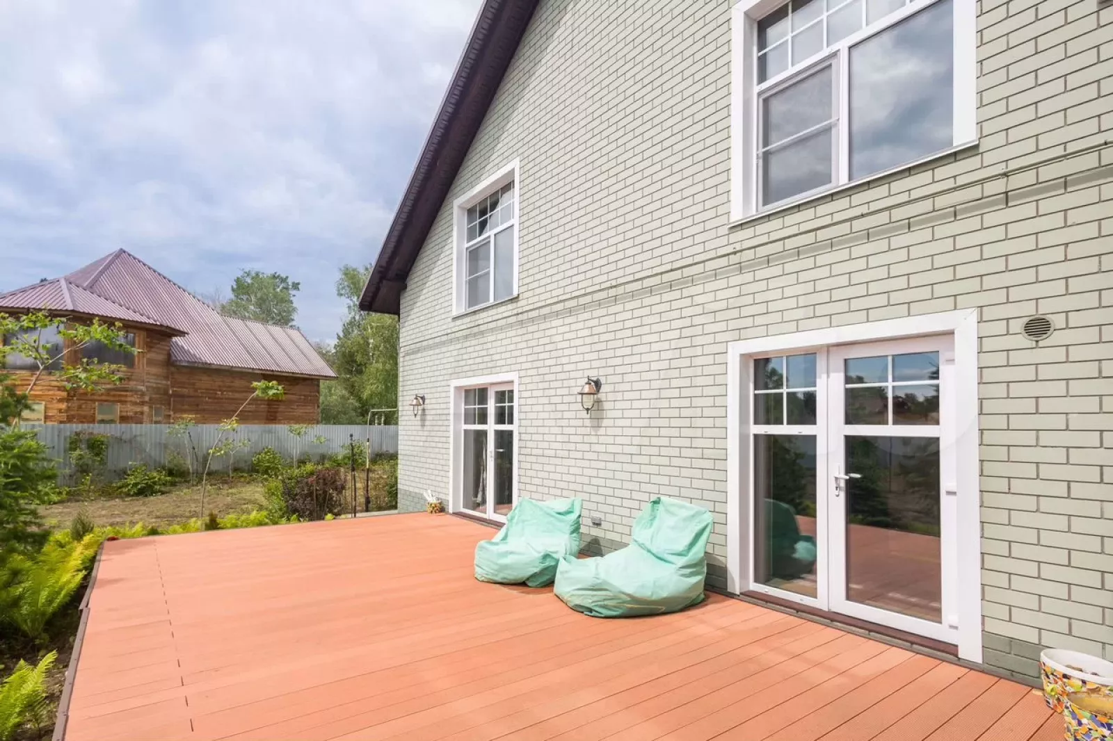Внутри дома пять комнат. Участок площадью 14 соток относится к категории личного подсобного хозяйства. На территории есть терраса с зоной для приготовления пищи на открытом воздухе с мангалом и печью, разбит газон, высажены хвойные деревья – кедры, ели, лиственницы, туи, маньчжурский орех.