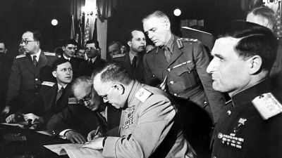 Окончательно Акт подписали представитель Германии – генерал-фельдмаршал Вильгельм Кейтель. СССР представлял заместитель Верховного главнокомандующего маршал Георгий Жуков.
