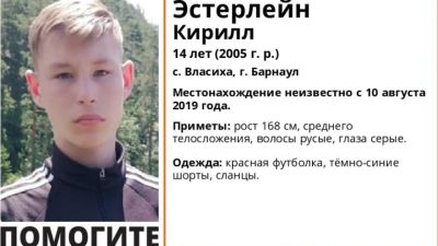 14-летний Кирилл Эстерлейн пропал в барнаульском поселке Власиха. Волонтеры поисково-спасательного отряда "Лиза Алерт" в Алтайском крае просят помощи в поиске и обращаются ко всем, кто мог видеть школьника или знает о его местонахождении.