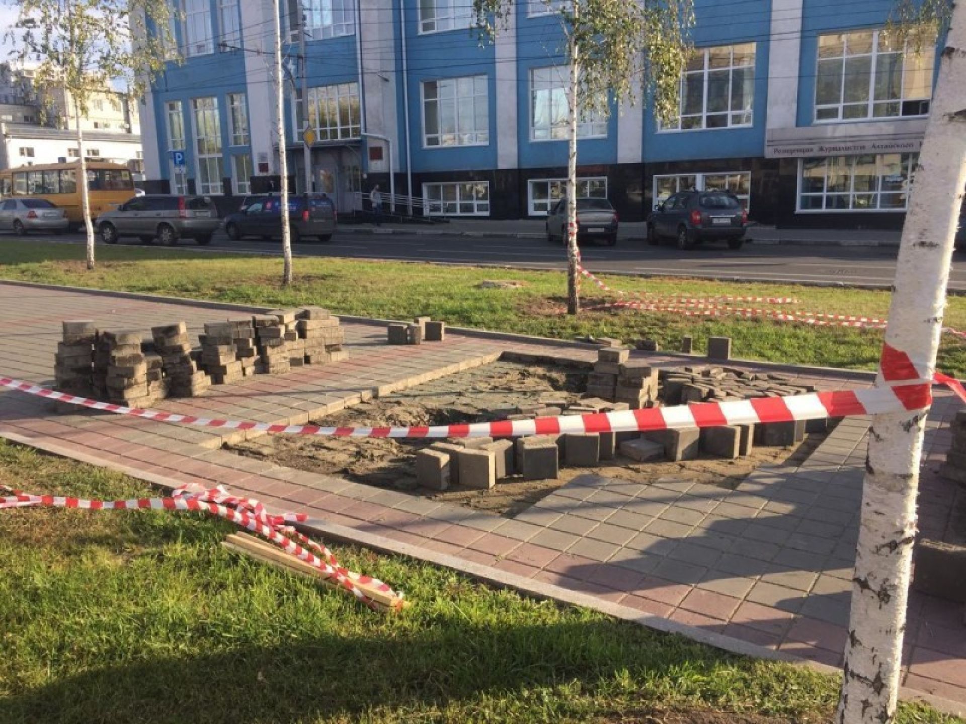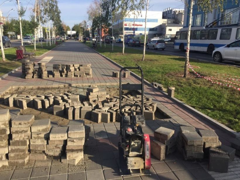 Дорожники заканчивают работу по укладке плитки, вызвавшей немало дискуссий среди барнаульцев