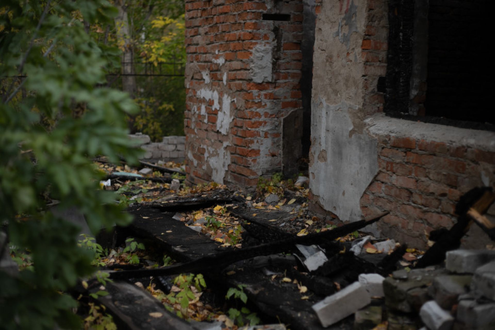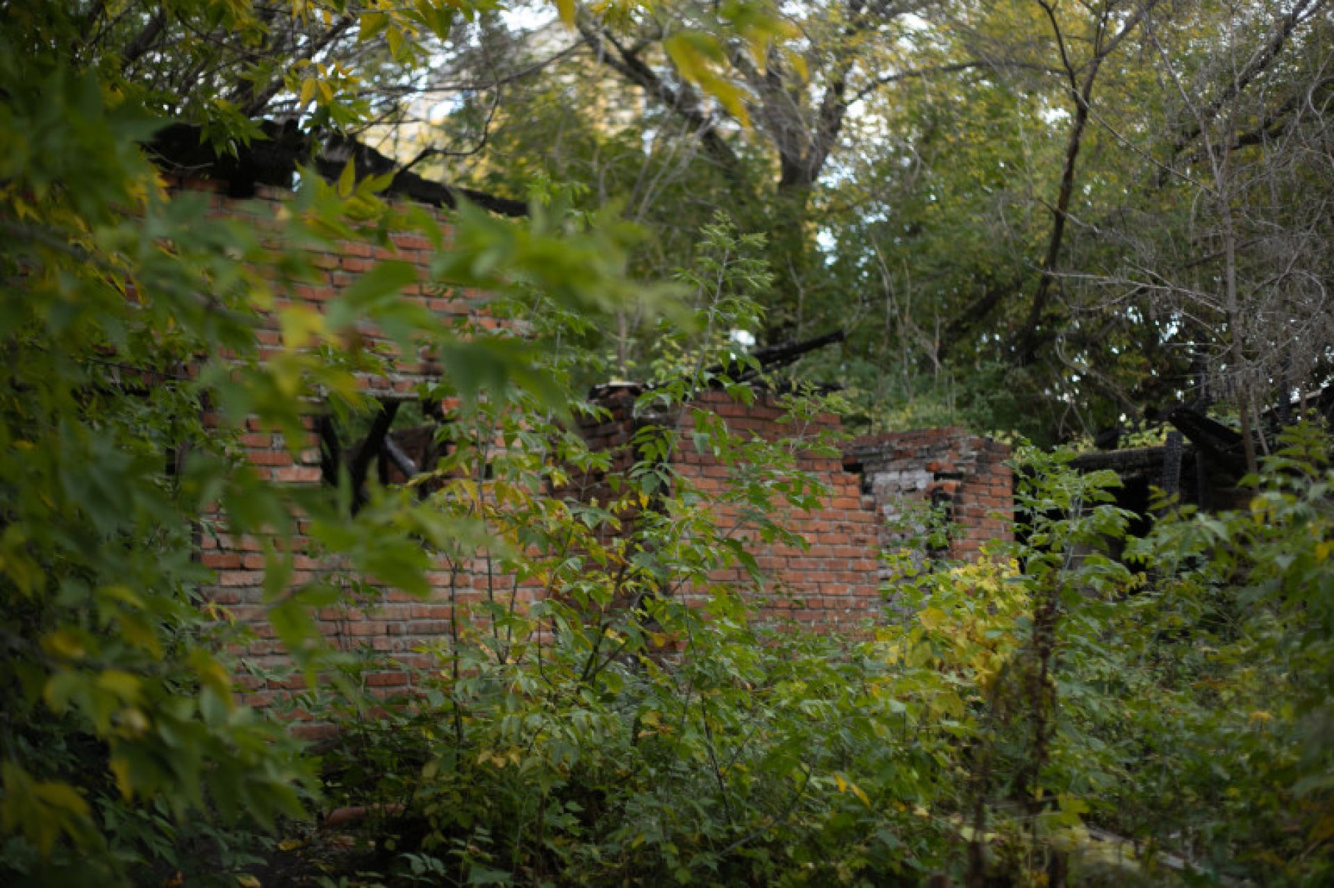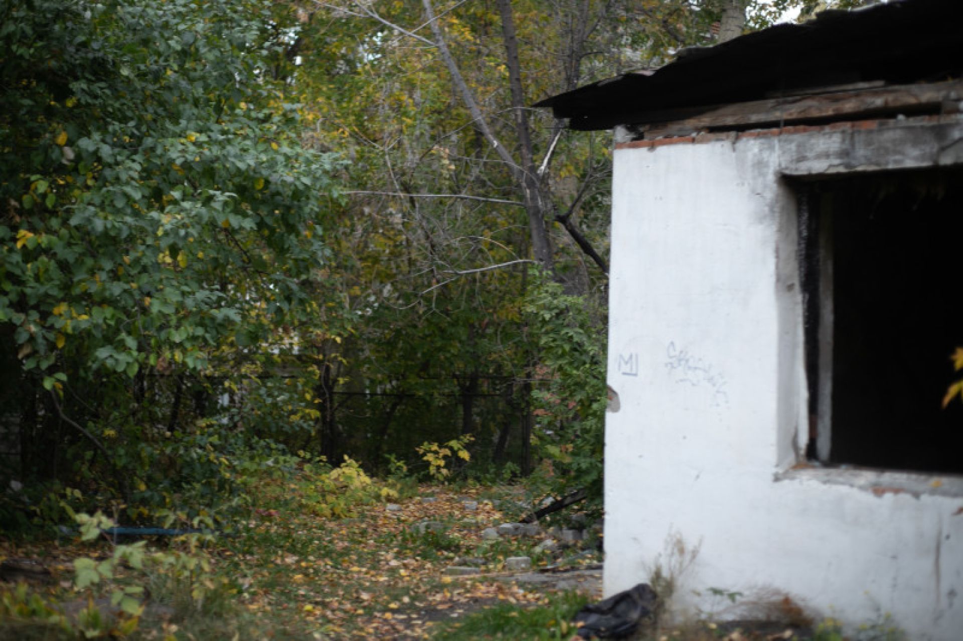 За парком находится заброшенное здание, которое явно облюбовали лица без определенного места жительства