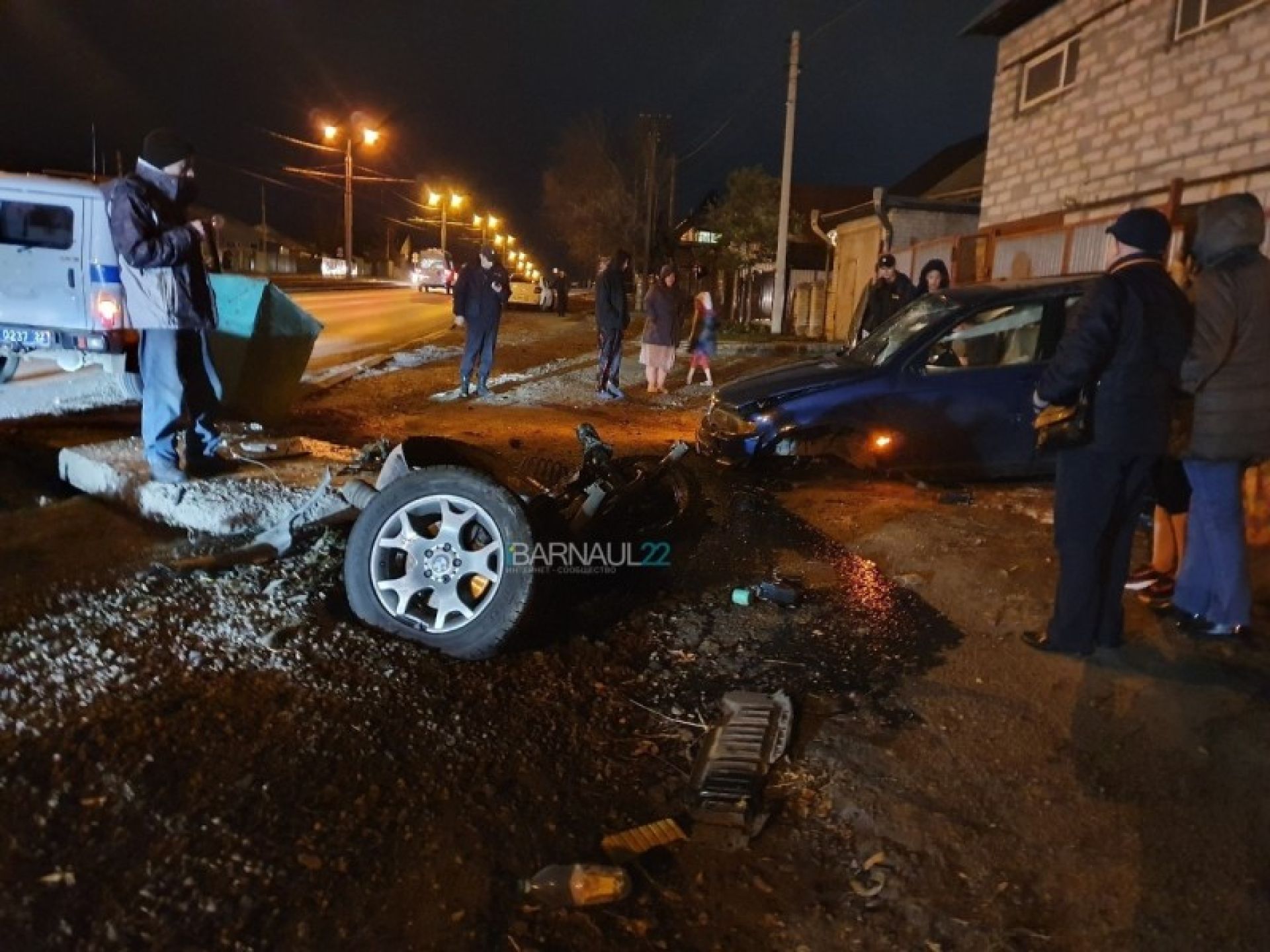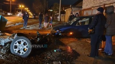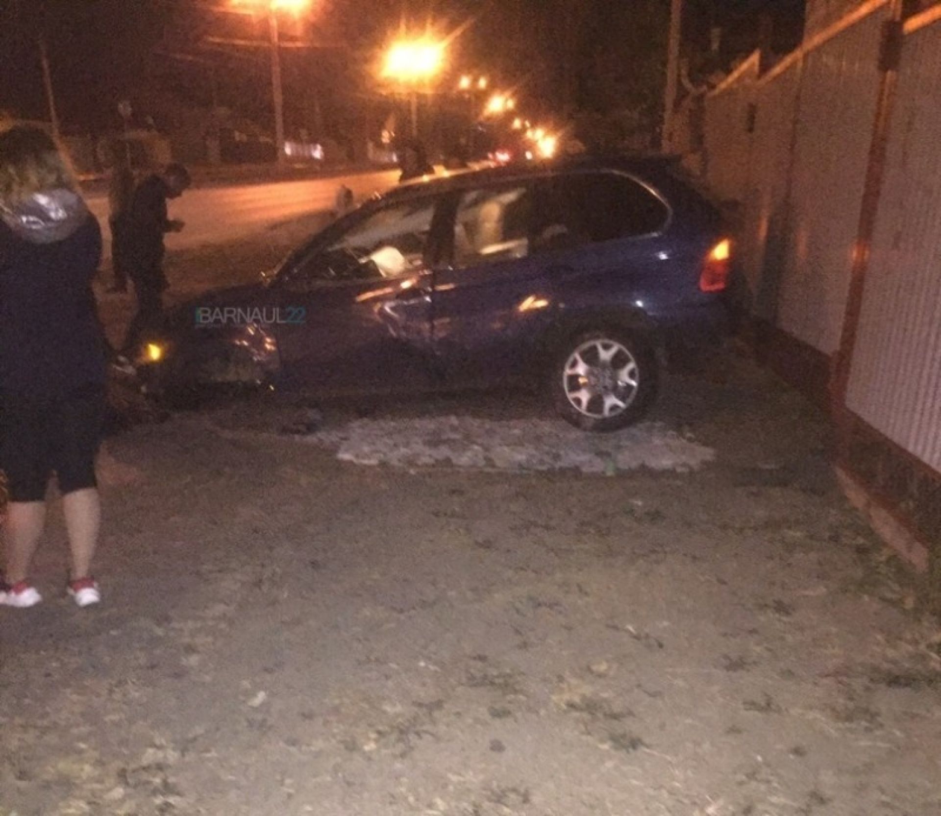 Вечером в минувшее воскресенье, 20 октября, произошло серьезное ДТП возле дома № 122 по улице Северо-Западной в Барнауле. Водитель иномарки BMW X5, двигаясь со стороны улицы Смирнова в сторону улицы Юрина, не справился с управлением на повороте и вылетел с дороги к частному дому. При этом "в полете" он зацепился за препятствие, от чего у машины вырвало переднюю ось, а саму ее развернуло на 180 градусов.