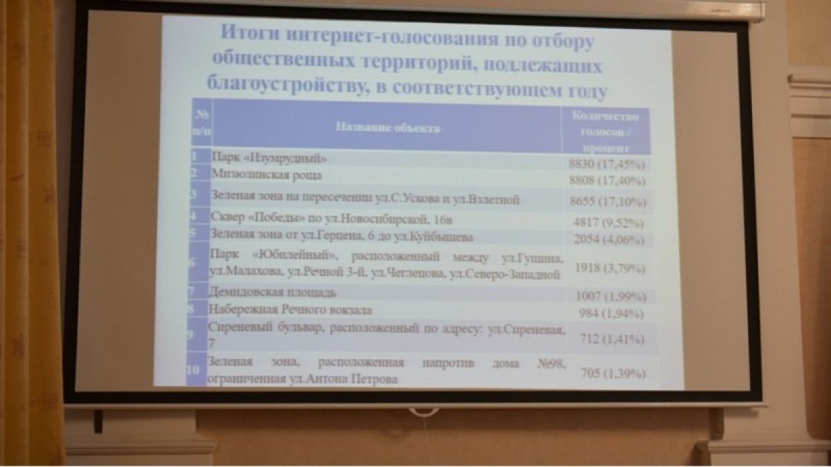 29 ноября в администрации Барнаула прошло заседание общественной комиссии по реализации муниципальной программы "Формирование современной городской среды". На нем подвели итоги голосования, которое проходило в интернете с 11 по 25 ноября.
