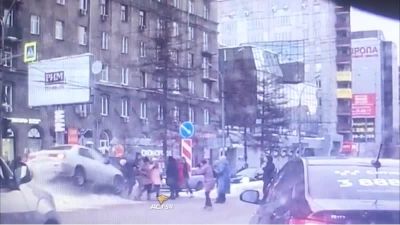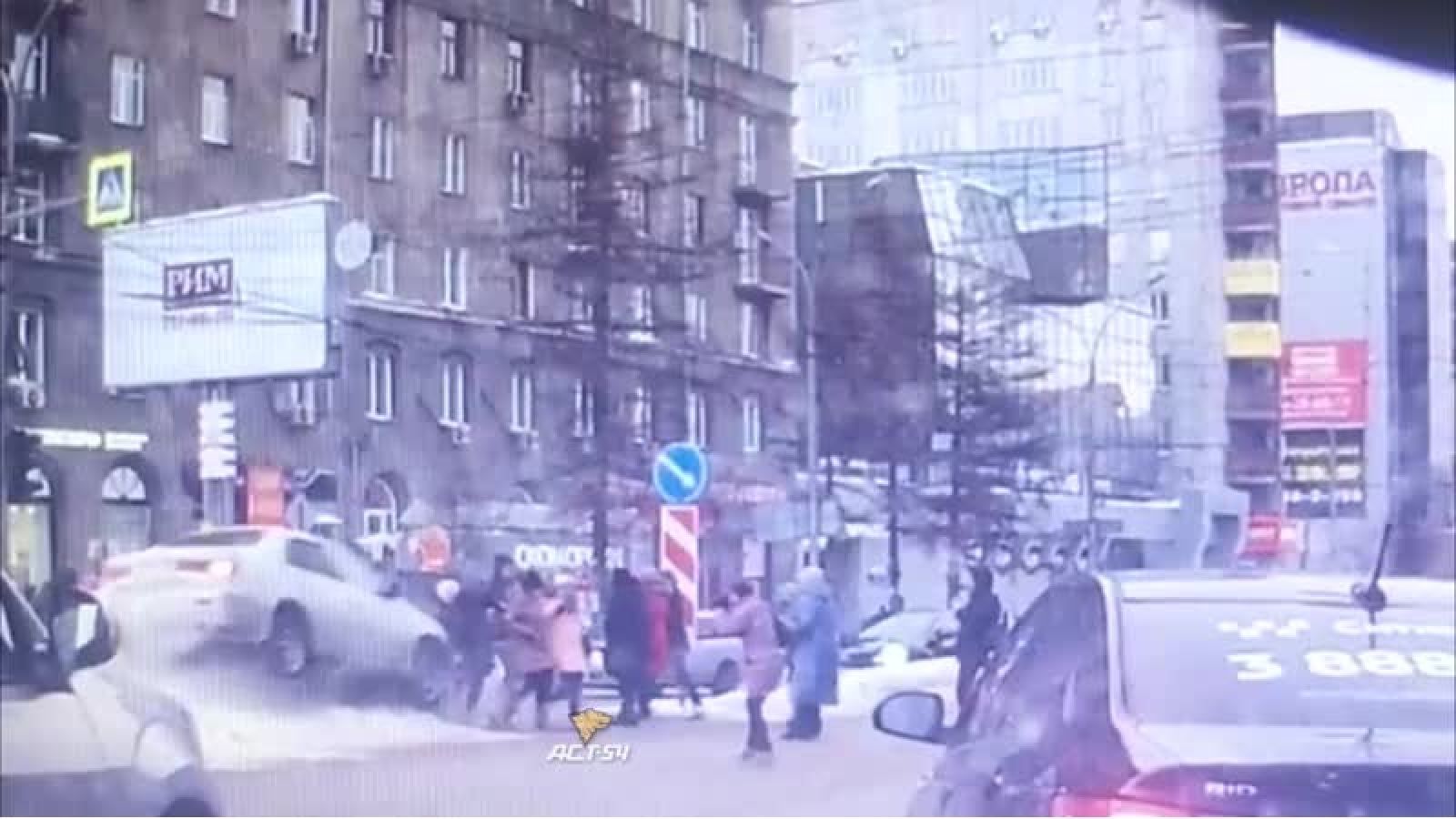 Toyota на скорости влетела в толпу пешеходов на Красном проспекте в Новосибирске. В этот момент люди находились на так называемом островке безопасности.