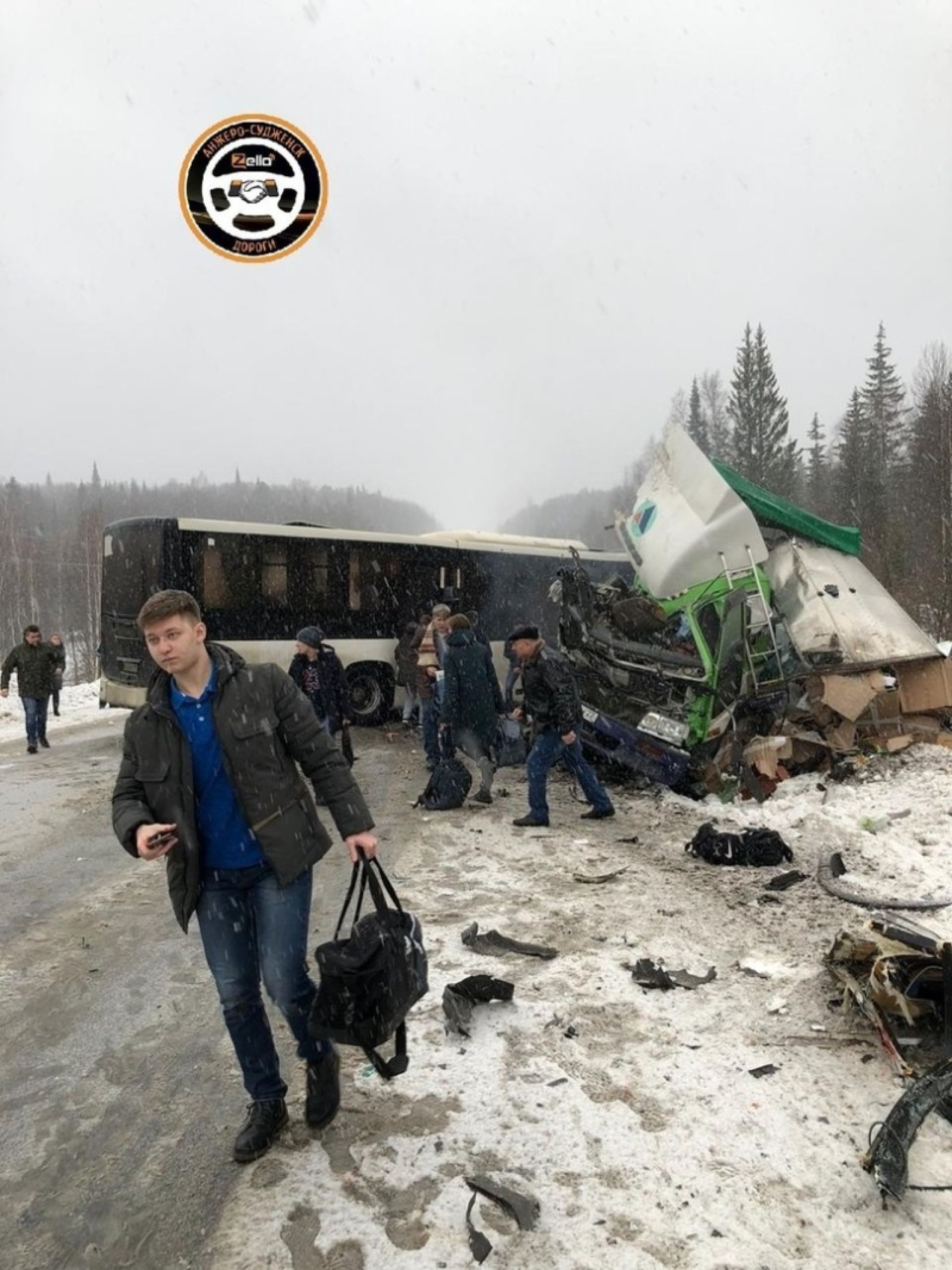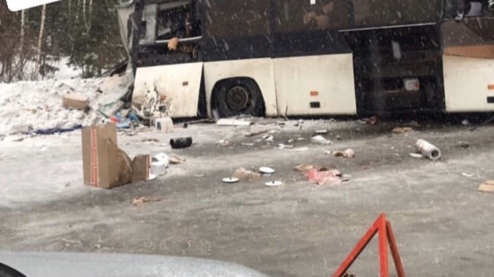 В результате ДТП водитель фуры погиб на месте. С места аварии в больницу с травмами различной степени тяжести доставлены трое пассажиров автобуса.