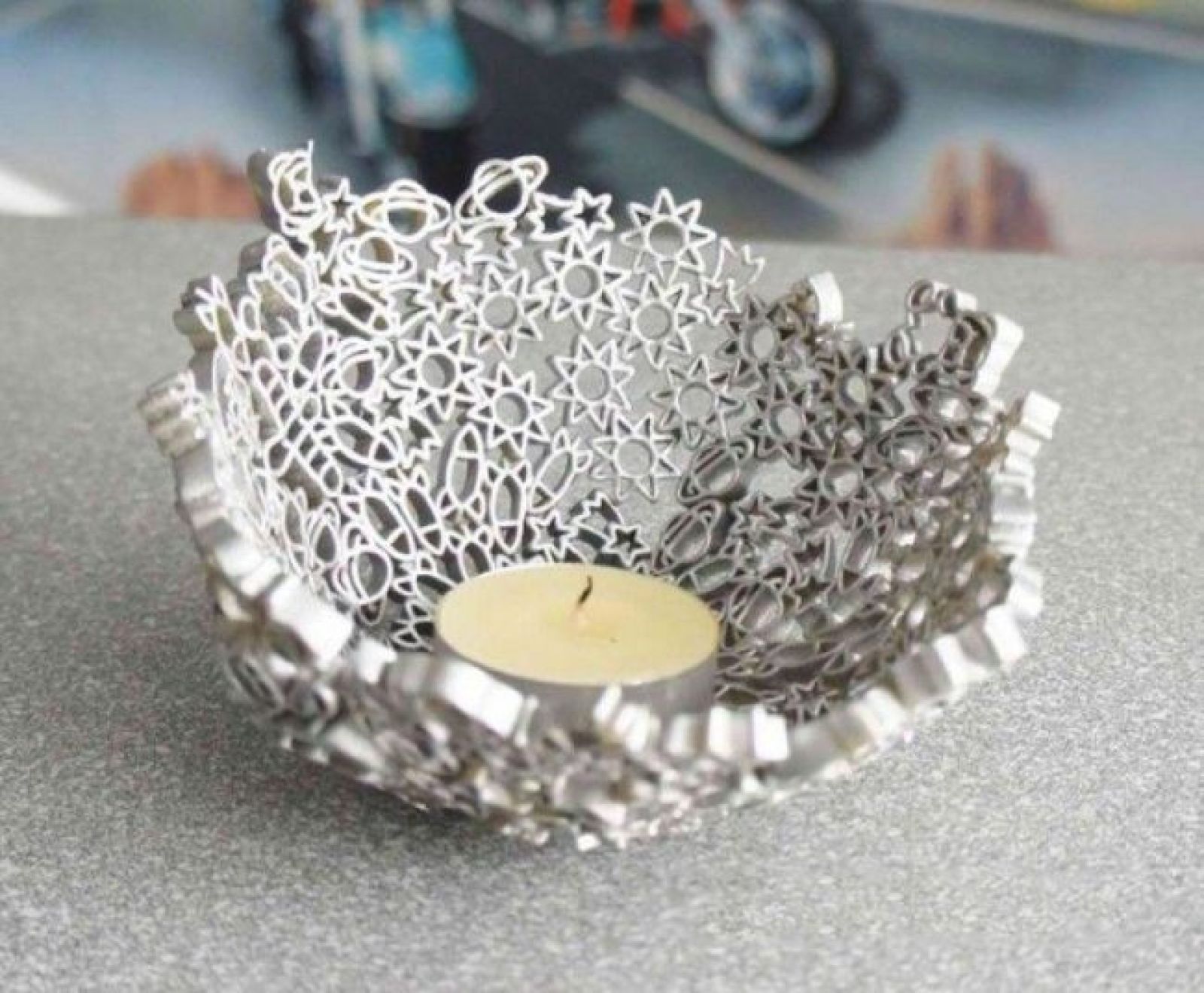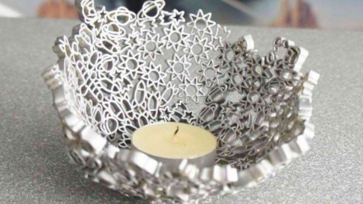 А из макарон можно собрать подсвечник. Для этого нужно надуть шарик, но совсем немного – вам же не нужен таз – и аккуратно приклеить макароны по форме шарика. Дать высохнуть, шар лопнуть и отклеить от макарон. Клей наносите на боковые стороны макарон, чтобы они крепились друг к другу, а не к шарику. После подсвечник можно покрасить.