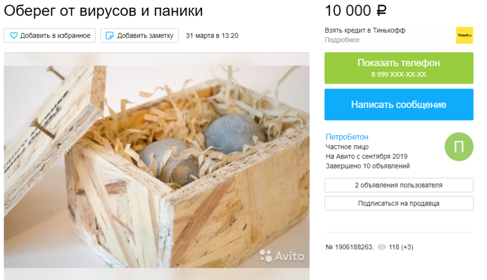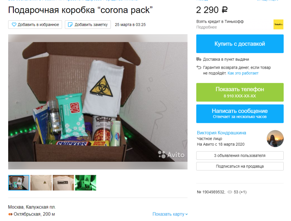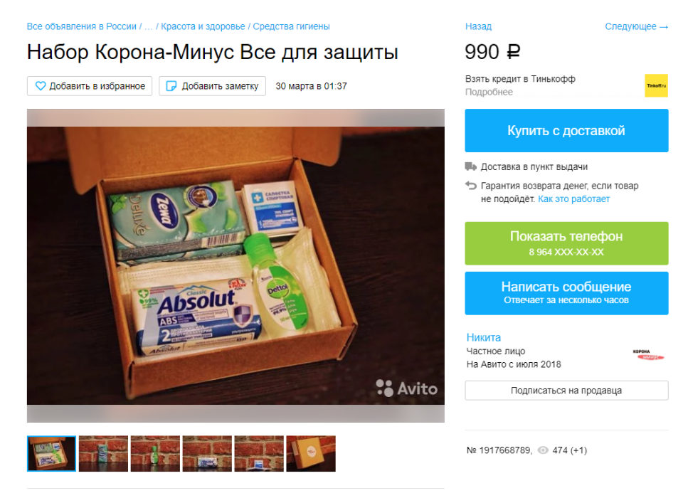 Продавцы на сайте объявлений хайпуют на теме угрозы заболевания новым вирусом