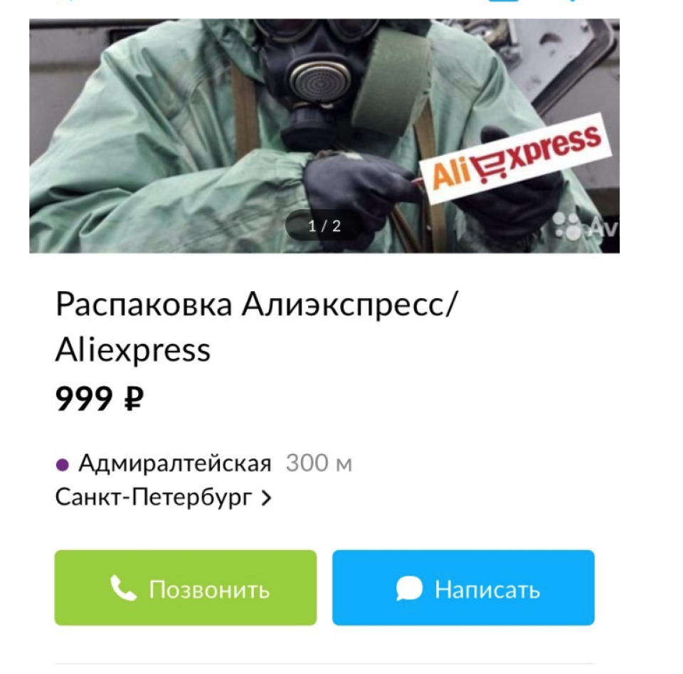 Помимо товаров от коронавируса, предлагаются и полезные услуги. Например, распаковка посылок с Aliexpress.