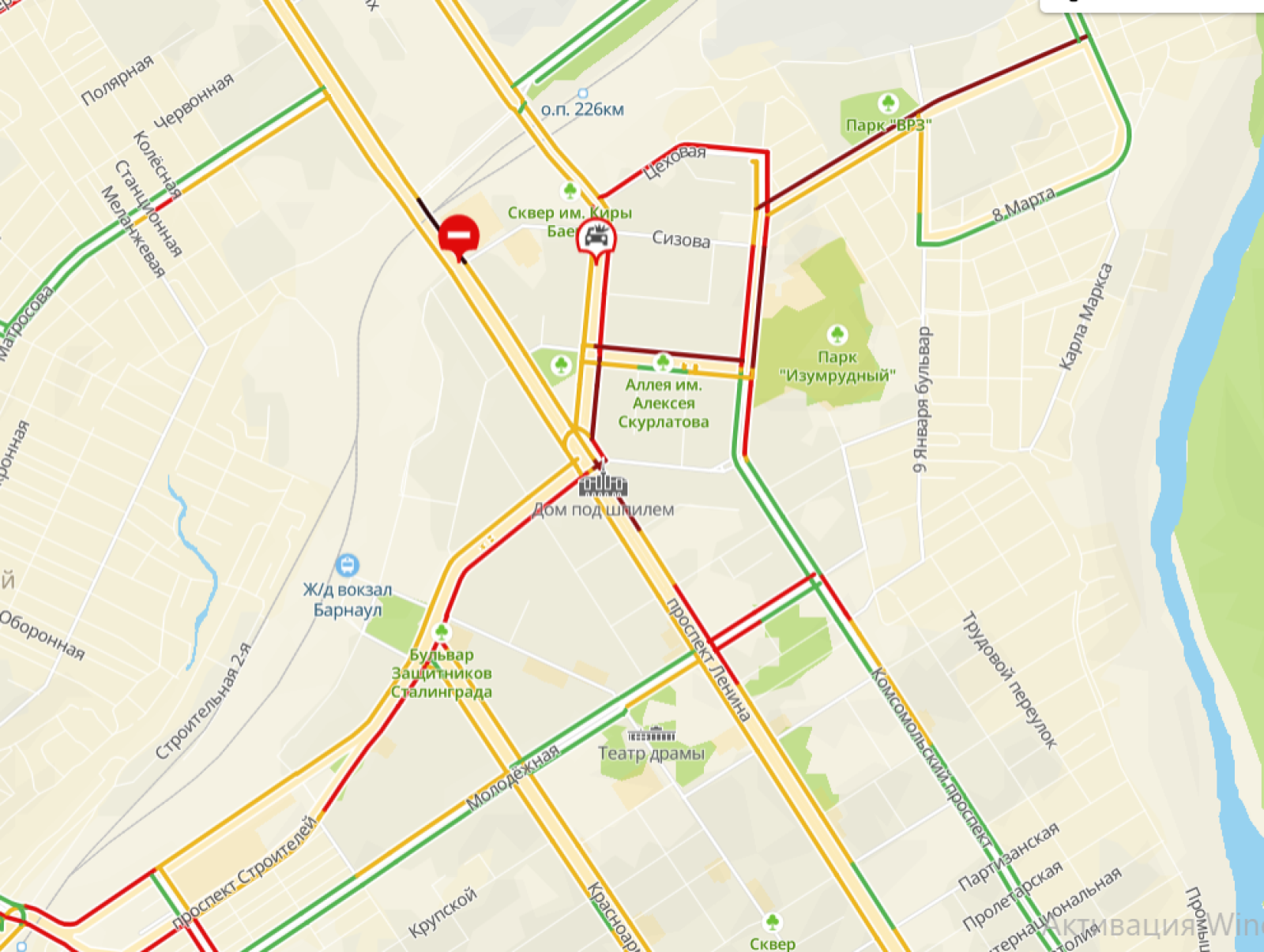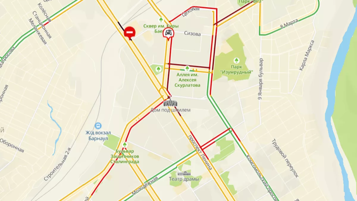 Традиционные пробки скопились и на Павловском тракте, улицах Советской Армии, Попова, Власихинской и на шоссе Ленточный Бор.