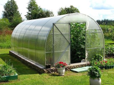 Пленка имеет короткий срок службы, плохо переносит резкие скачки температуры, морозы и ветра. Чаще всего используется всего один-два сезона. - Поликарбонат. Это двусторонний пластик, внутри сот находится воздух. Поликарбонат достаточно прочный и надежный, имеет длительный срок эксплуатации. Характеризуется небольшим весом и способностью хорошо пропускать свет. Минусом является высокая стоимость.