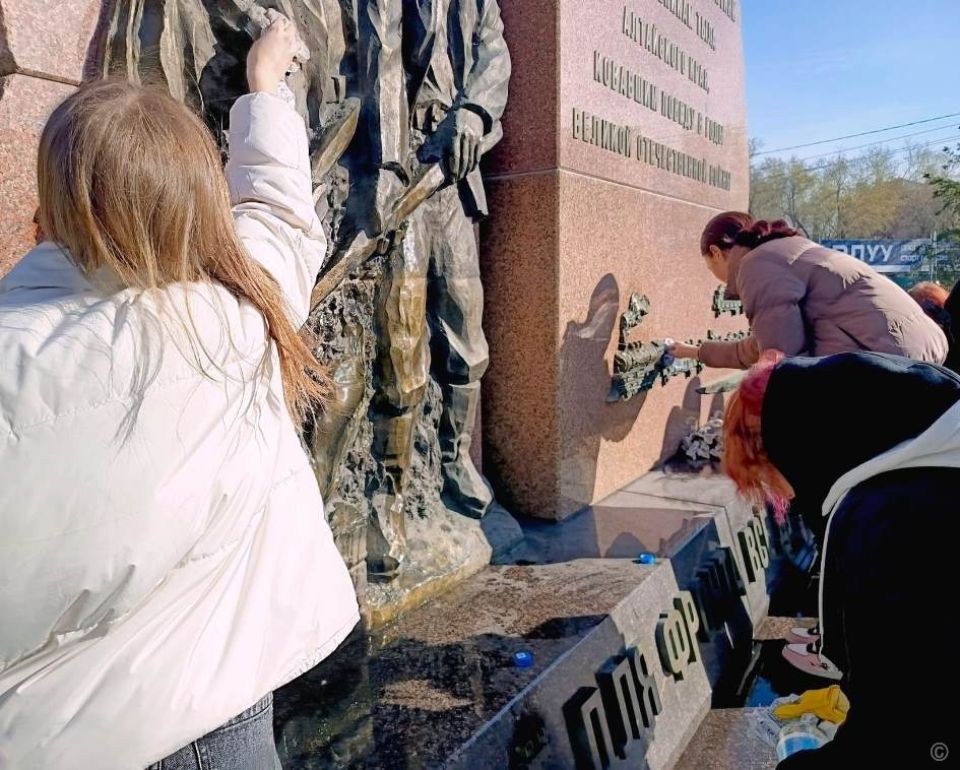 Например, студенты Международного колледжа сыроделия и профессиональных технологий помыли стелу эвакуированным заводам в годы Великой Отечественной войны.