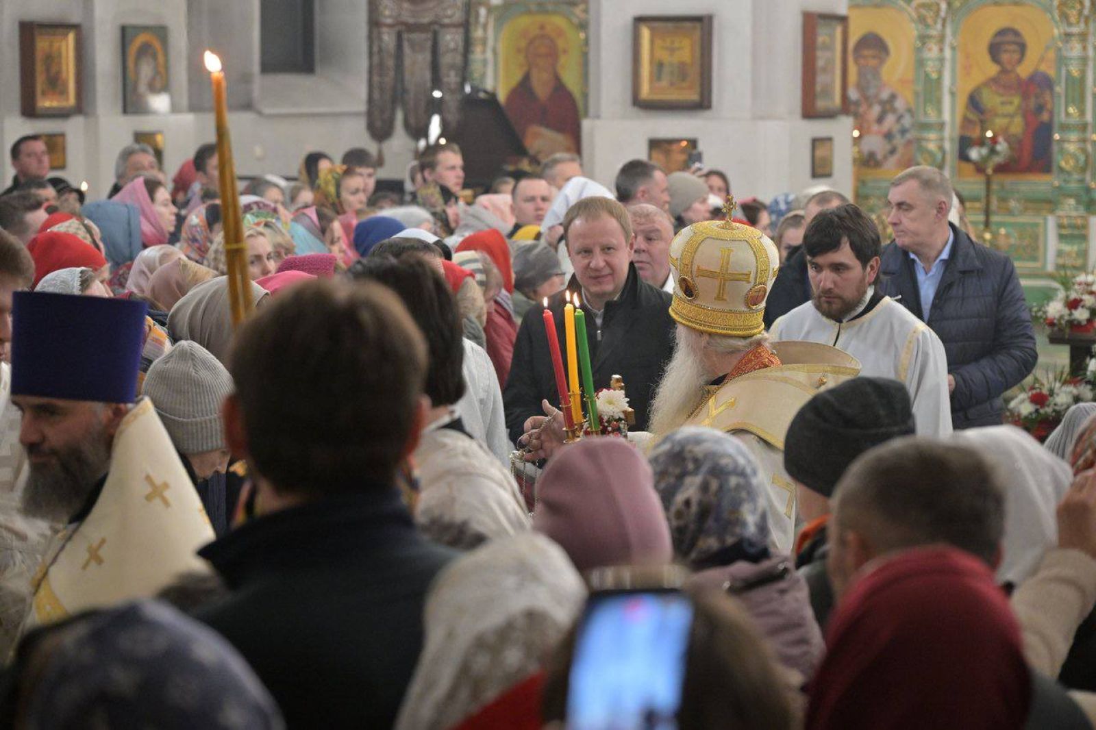 Прошедшей ночью губернатор вместе с жителями края разделил особенную праздничную атмосферу литургии, которую провел в Александро-Невском соборе митрополит Сергий.