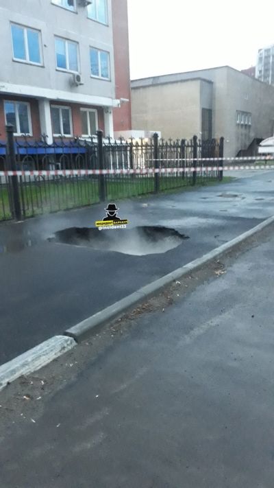Отмечается, что большую яму на пешеходной дорожке огородили лентой. По словам местной жительницы, провал продолжает увеличиваться.