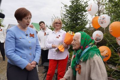 Председатель Думы поздравила участницу войны и ее дочь Любовь с наступающим Днем Великой Победы, пожелала здоровья и благополучия, а также вручила подарки от администрации города и Барнаульской Думы