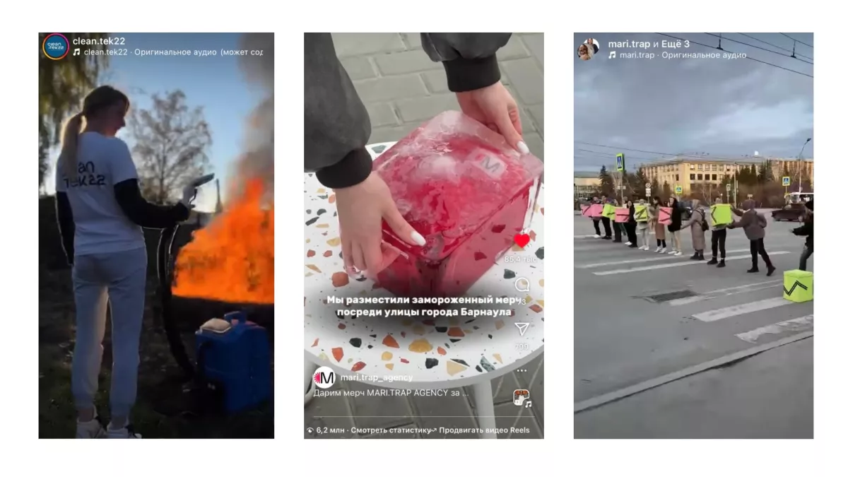 1. Сибирское СММ-агентство MARI.TRAP AGENCY — заморозили мерч в глыбу льда, вышли с ним на улицы города и набрали 5 млн просмотров.