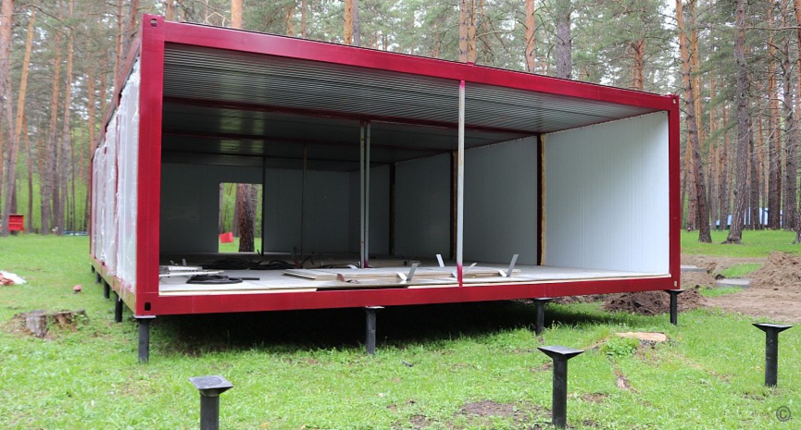 Медпункт состоит из шести модульных блоков, на сегодняшний день подрядной организацией установлено четыре из них. Здесь будут располагаться склад, кабинет медсестры, две комнаты, душевая комната с тамбуром, буфет, фильтр, изолятор, процедурный кабинет, кабинет приема врача и туалетные комнаты.