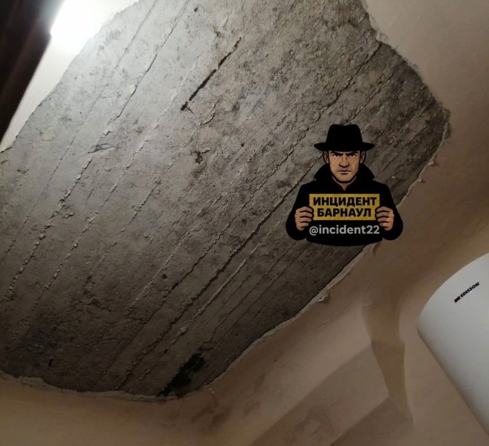 UPD.: В МЦУ Барнаула отметили, что на место происшествия выезжали специалисты. По результатам осмотра установлено, что изменений технического состояния несущих конструкций перекрытий не выявлено. Угрозы обрушения и причинения вреда жизни и здоровью людей нет. Жильцам квартиры для дальнейшей эксплуатации помещения ванной даны рекомендации.