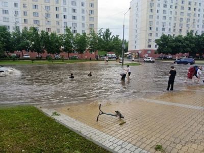 После нескольких дней жары на сибирскую столицу обрушилась гроза с ливнями. Осадков выпало столько, что местами с ними не справлялись ливневки