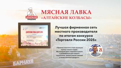 Победителем в номинации "Лучшая фирменная сеть местного производителя" в городе Барнауле стала фирменная розничная сеть "Мясная лавка" торговой марки "Барнаульский пищевик". Накануне в Москве прошло торжественное вручение высших наград.