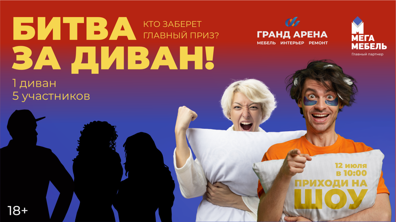Организаторы приглашают всех желающих посмотреть на мини-шоу "Битва за диван" и поболеть за участников.