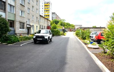 На данный момент на дворовой территории уже сделан монтаж бордюрного камня и поребрика, отремонтировано и расширено асфальтовое покрытие проезжей части, а также обустроены парковки, сделаны тротуары и освещение. Теперь здесь занимаются устройством контейнерной площадки. В дальнейшем рабочие установят во дворе спортивную и детскую площадки и обустроят контейнерную площадку.