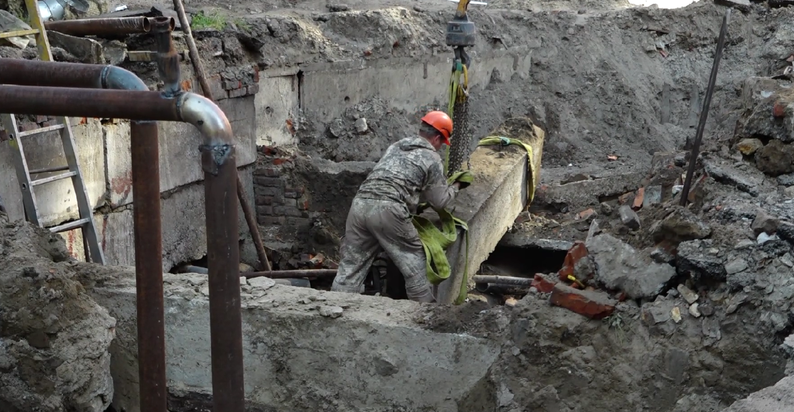 Во дворе дома на Партизанской, 81 ремонт уже вовсю идет. Всего будут менять почти 179 метров труб, диаметр которых планируют увеличить с 300 миллиметров до 400. Специалисты говорят, что пора, ведь только за последнее время здесь было семь повреждений. К тому же, при замене труб на больший диаметр решают и другую масштабную задачу.
