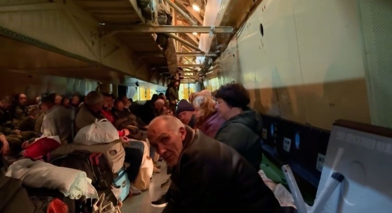 Судя по кадрам, среди вернувшихся много пожилых людей. Одной из пенсионерок помогают спуститься с борта – она с трудом передвигается.